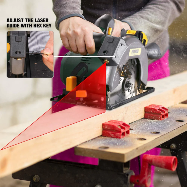 - [Guide laser réglable et parallèle ] – le laser est réglable pour répondre à toutes vos exigences en matière de précision de coupe. le laser assure une ligne de coupe professionnelle et précise. le guide parallèle permet des coupes exactes le long du bord d’une pièce et des bandes de coupe de même dimension ; le support de grands panneaux peut améliorer la stabilité de cette scie compacte dans le processus de coupe.
