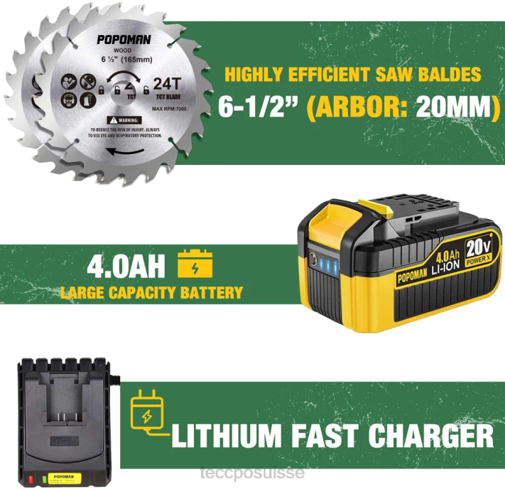 - (batterie remplaçable)la batterie de cette scie circulaire sans fil est compatible avec toutes les batteries teccpo et popoman. si vous avez besoin de commander une nouvelle batterie de 4,0 Ah, vous pouvez rechercher dans : b08cz9w71y.
