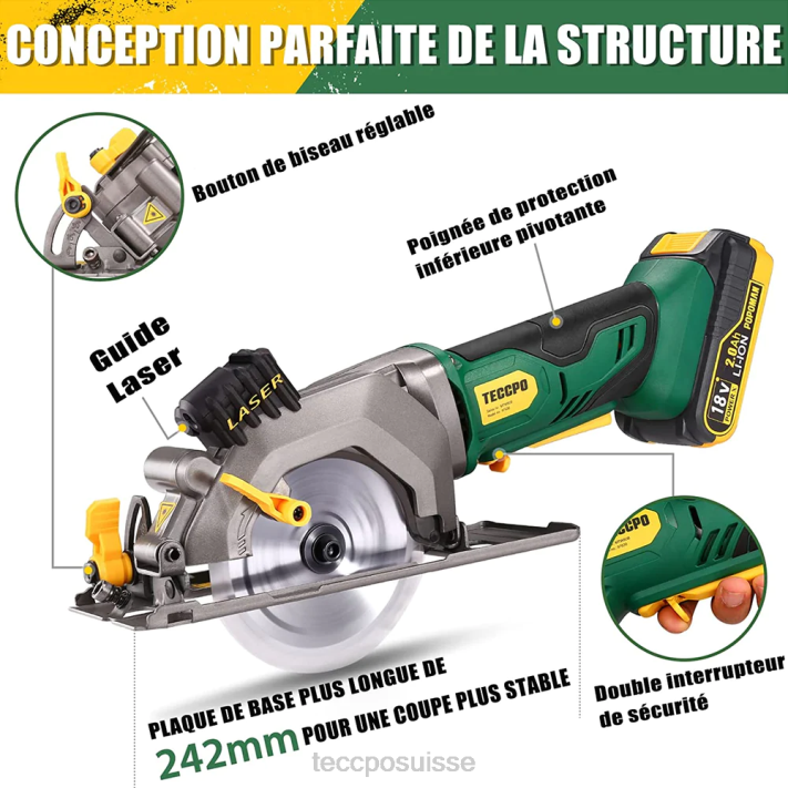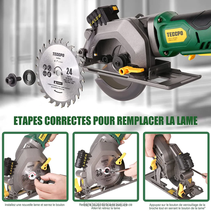 ZLFT26 TECCPO Mini scie circulaire sans fil 18v avec guide laser travail du bois
