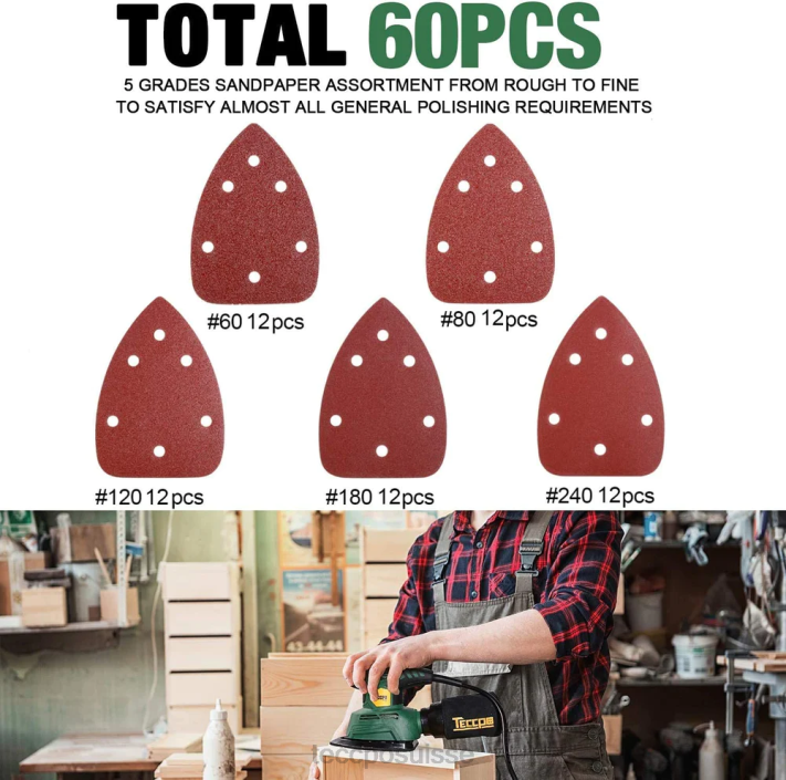 - taille universelle : la taille du papier de verre est de 138 mm x 97 mm avec 6 trous pré-percés, adapté au teccpo tams22p/ Ponceuse à souris tams23p et autre ponceuse à souris de la même taille. Si vous possédez une ponceuse de la même taille, ce papier de verre sera votre meilleur choix.