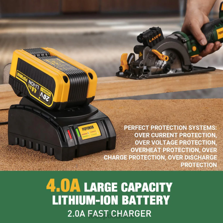 - [Batterie 4,0 Ah et moteur à haut rendement] La batterie de grande capacité 20 V 4 000 mAh permet une longue durée de travail une fois chargée. Le chargeur 2,0 A est équipé pour une charge rapide. Le moteur en cuivre pur offre une vitesse à vide de 4 500 tr/min pour une coupe à haute efficacité.