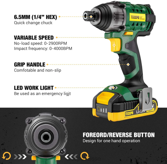 - Clé à chocs 18 v – 180 nm, vitesse de 0 à 2900 tr/min et efficacité de travail élevée pour visser et desserrer les vis. Le mandrin à changement rapide de 1/4 pouces (6,35 mm) est plus pratique pour remplacer les accessoires.