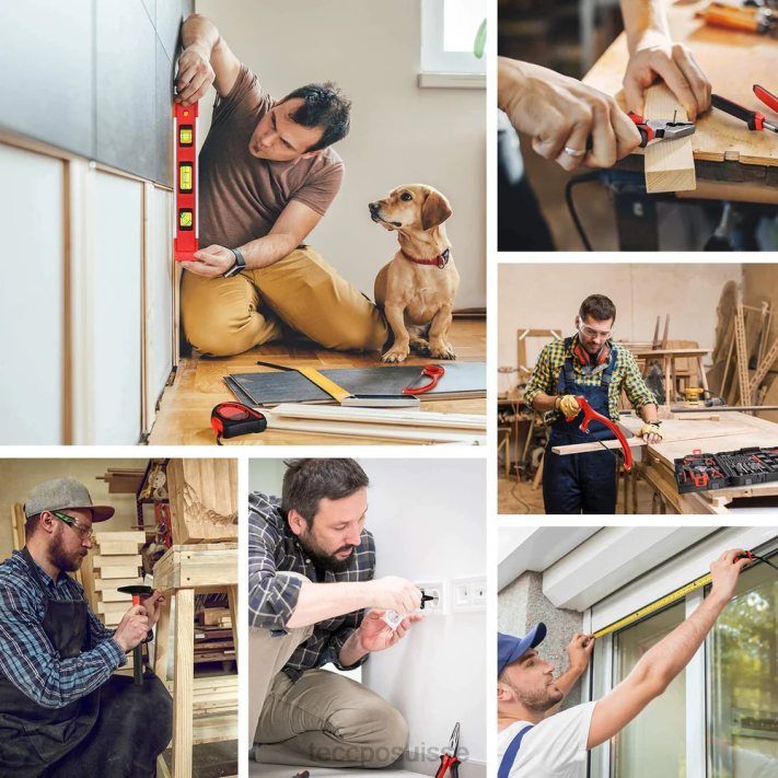 (idéal pour l’entretien quotidien de la maison) parfait pour marteler, mesurer, niveler, couper, visser , et bien plus encore, le kit est un incontournable pour les projets de bricolage, notamment l’assemblage de meubles, la menuiserie, l’entretien quotidien et bien d’autres encore, et également idéal comme cadeau de Noël pour la famille et les amis.