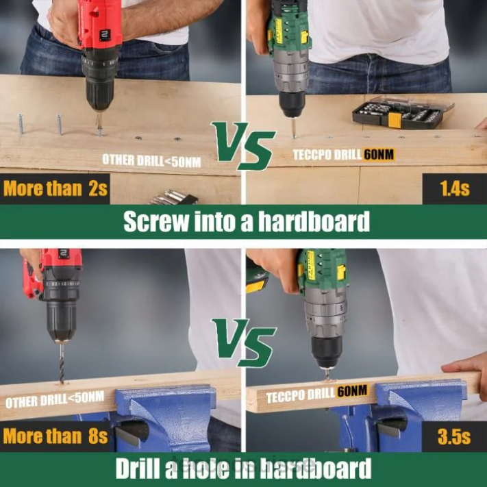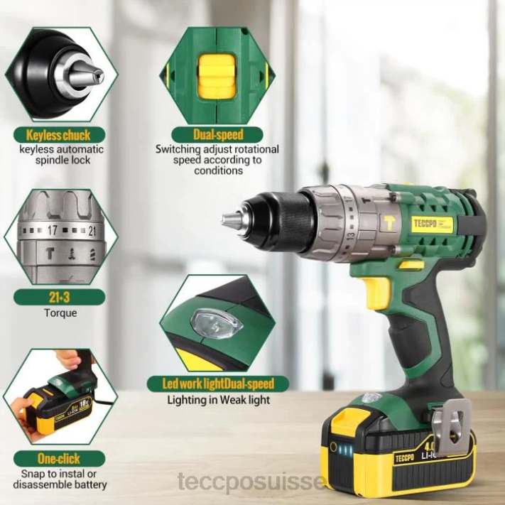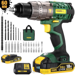 ZLFT9 TECCPO Perceuse à percussion sans fil, batterie 2.0/4,0 ah avec 30/34 accessoires perceuses et pilotes