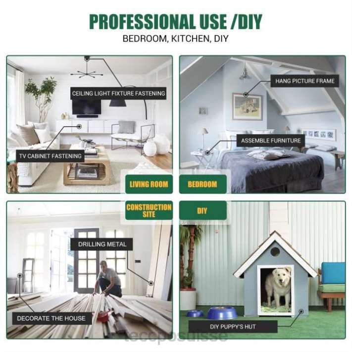 (21 + 3 réglages de couple) Fonctions 3 en 1 : perceuse, tournevis et marteau, pour visser la vis et le trou dans le métal, le bois et le béton. une précision maximale dans chaque application est garantie par les 2 vitesses mécaniques et les 21 réglages de couple de serrage. la perceuse-visseuse a 2 vitesses variables (0-450 tr/min et 0-1700 tr/min), elle peut être compétente pour des tâches plus différentes telles queassemblage de meubles, décoration, etc.