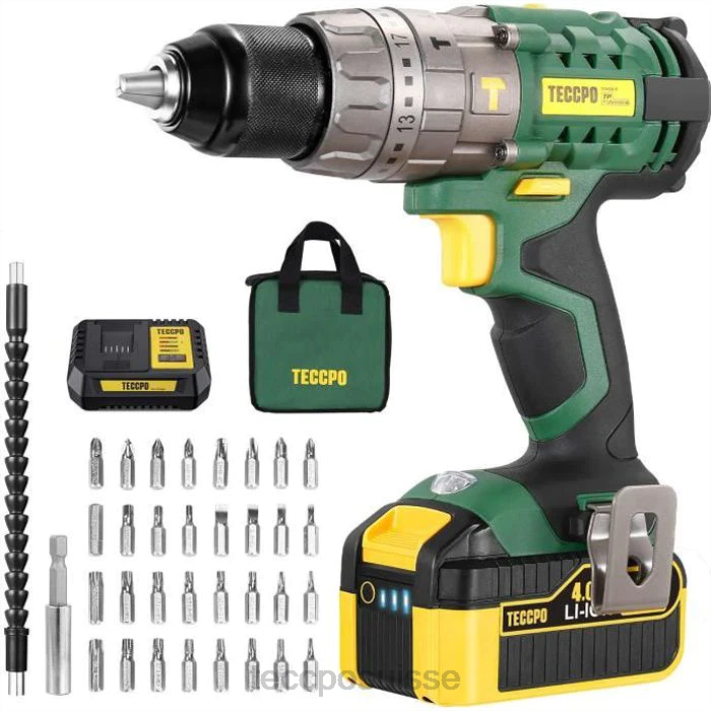 (1 * 4.0ah batteries + 34 pièces) 1 * perceuse-visseuse sans fil teccpo 18v, 1 * batteries 4,0ah, 1 * rallonge (60 mm), 32x embouts de tournevis, 1 * arbre flexible, 1 * chargeur rapide, 1 * boucles de ceinture , 1 * manuel d’utilisation.