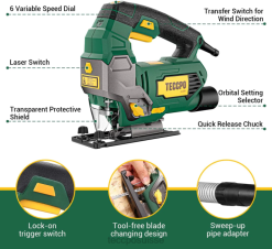 ZLFT21 TECCPO Scie sauteuse filaire 6,5 A 3 000 spm avec guide laser travail du bois