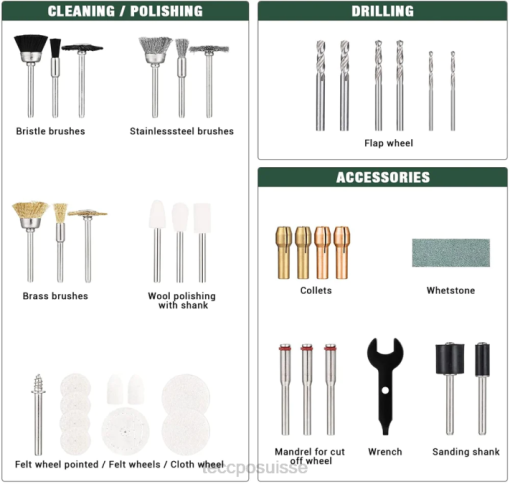 - utilisation large – il a des tiges de 1/8″ de diamètre et est un partenaire parfait de la plupart des outils rotatifs.Collets de 4 tailles (1,6 mm, 2,3 mm, 3,2 mm*2) compatibles avec la plupart des outils rotatifs.idéal pour l’amélioration de l’habitat, les loisirs, l’artisanat et chaque fois que vous avez besoin de polir, meuler, percer, couper, graver et bien plus encore.