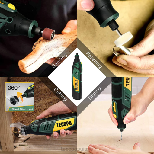 (100 accessoires + 2 pièces) le mini broyeur teccpo wi100 accessoires différents et compatibles avec les outils Dremel. outil rotatif, chargeur rapide, 100x accessoires, jauges de profondeur, masque de protection, 102 accessoires qui permettent de couper, poncer, poncer, graver, polir, tailler, percer, afficher, etc.