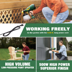 - [Puissance forte de 600 watts et excellente finition] – la puissance élevée facilite la pulvérisation de peinture avec une viscosité allant jusqu’à 100 Din/s, plus élevé que les articles réguliers. il peut créer une finition lisse et superbe sans traces de pinceau, ce qui sera votre meilleur pulvérisateur de peinture électrique pour le jardin, les clôtures, les murs intérieurs, les plafonds et l’artisanat, etc. un moteur en cuivre haute performance fournit plus de puissance et délivre moins de chaleur que le moteur ordinaire en aluminium recouvert de cuivre prolonge considérablement la durée de vie de votre pulvérisateur.