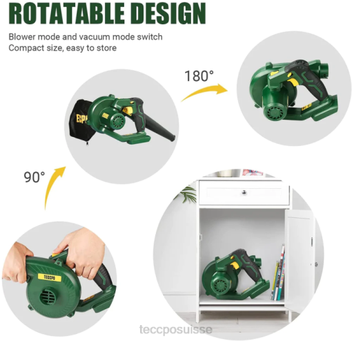 - Conception légère et conception rotative à 180 degrés : le souffleur de feuilles sans fil teccpo est conçu pour le travail familial. avec un corps ultra-léger, seulement 2,5 lb (sans batterie), il est facile à manipuler d’une seule main. la conception compacte permet une utilisation dans des zones restreintes. ce ventilateur électrique peut être tourné à un angle de 90 degrés et de 180 degrés. Le pliage à 90 degrés permet de modifier la fonction de soufflage et d’aspiration, le pliage à 180 degrés est pratique pour le stockage et ne prend pas de place.
