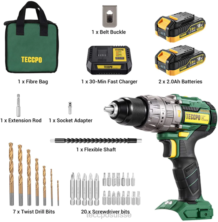 ZLFT8 TECCPO Perceuse sans fil sans balais 60 nm perceuses et pilotes
