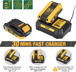 (chargeur rapide de 30 minutes) Chargeur rapide 4a permettant d’économiser jusqu’à 50 % du temps par rapport aux autres . la batterie passe à 25 % en seulement 5 minutes de charge, ou à 100 % en 30 minutes. et il dispose d’un indicateur d’état de charge de la batterie. plus rapide et plus pratique, parfait pour vos travaux de bricolage.